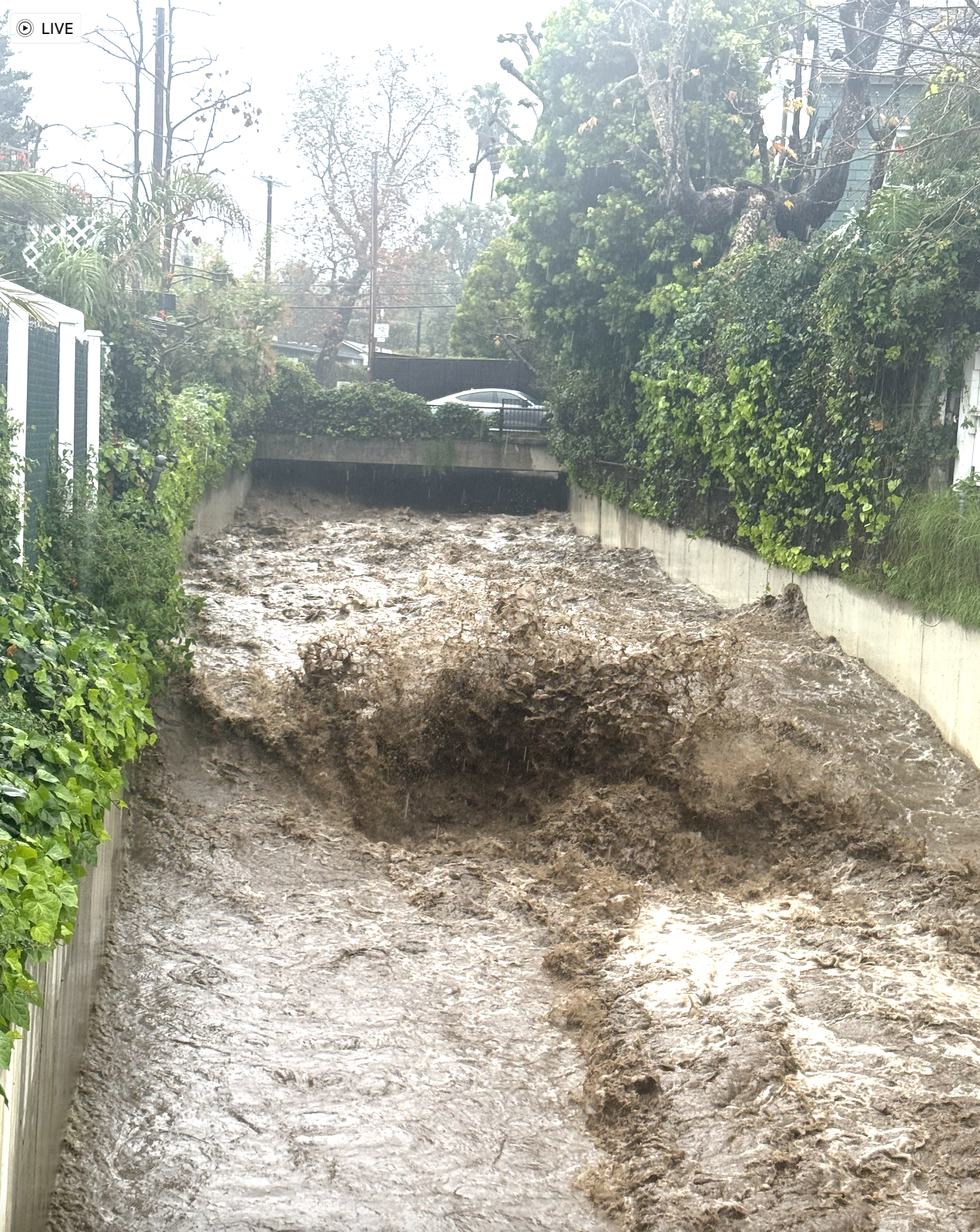 “The channel capacity has been reduced by about 15% near the confluence of Rustic Canyon and Santa Monica Channel and should handle expected flows,” Grigoryan texted Kilbride. “Crews will not be able to remove the concrete until after the storms and are continuing to monitor the channel. We will continue to work with our city departments to keep them aware of the issue if we have more water that spills over during the next few rain events.”