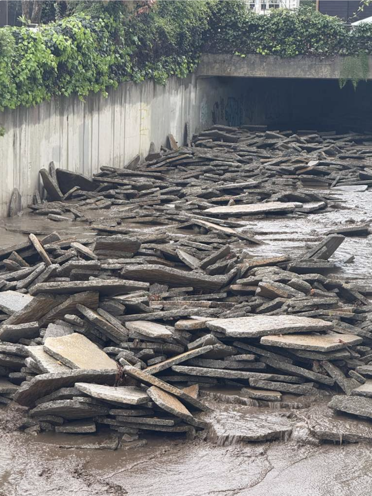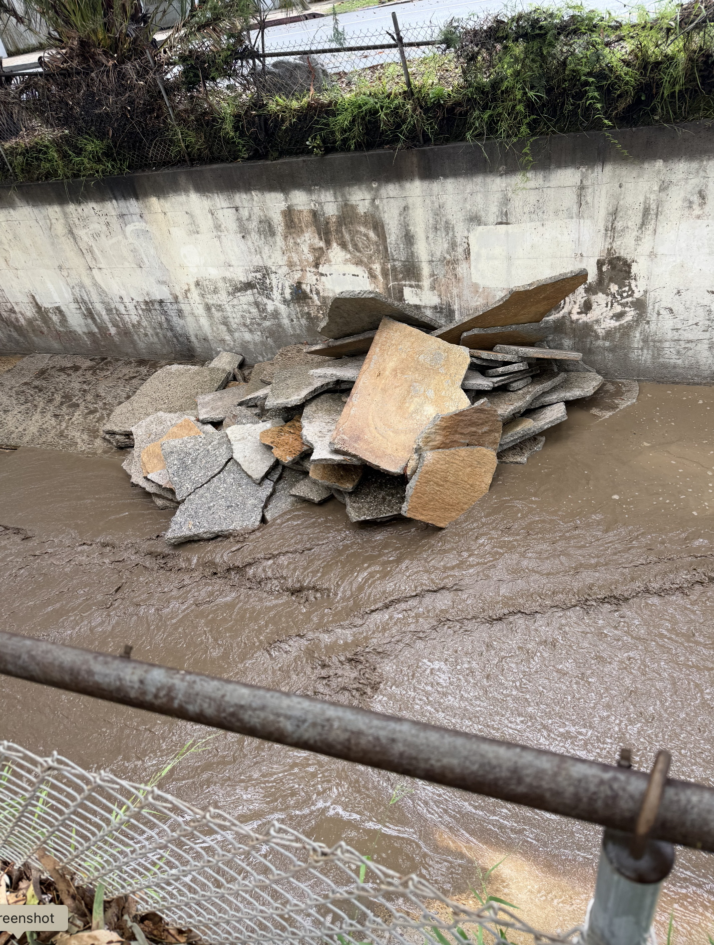 A stack of concrete slabs in the flood channel. Photo: Courtesy of Sharon Kilbride