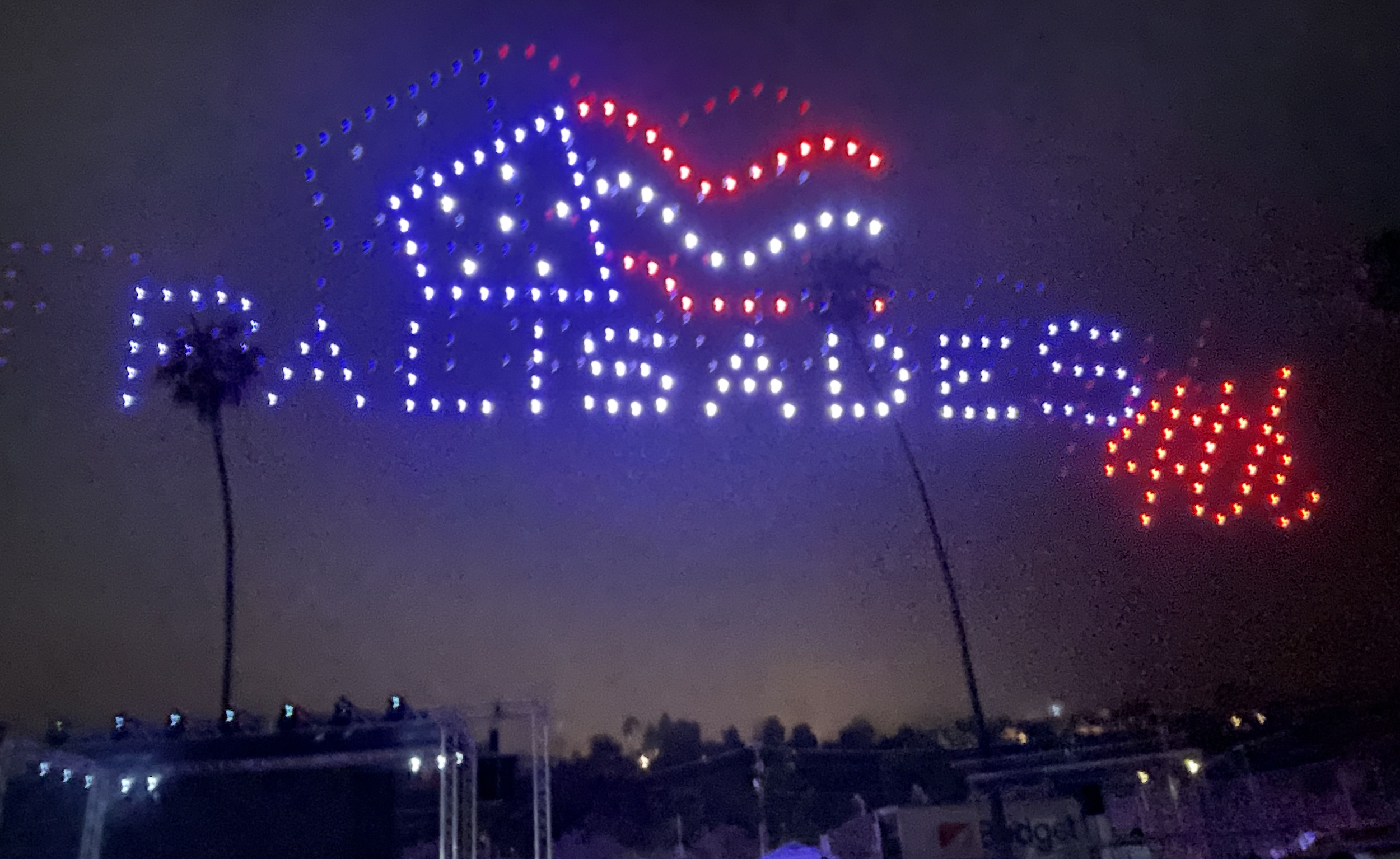 Event organizers Matthew Rodman and Daphne Gronich received grateful applause before Lagana introduced the finale drone show. Then, 250 drones, accompanied by music, drew pictures in the sky and spelled words designed to inspire the crowd.