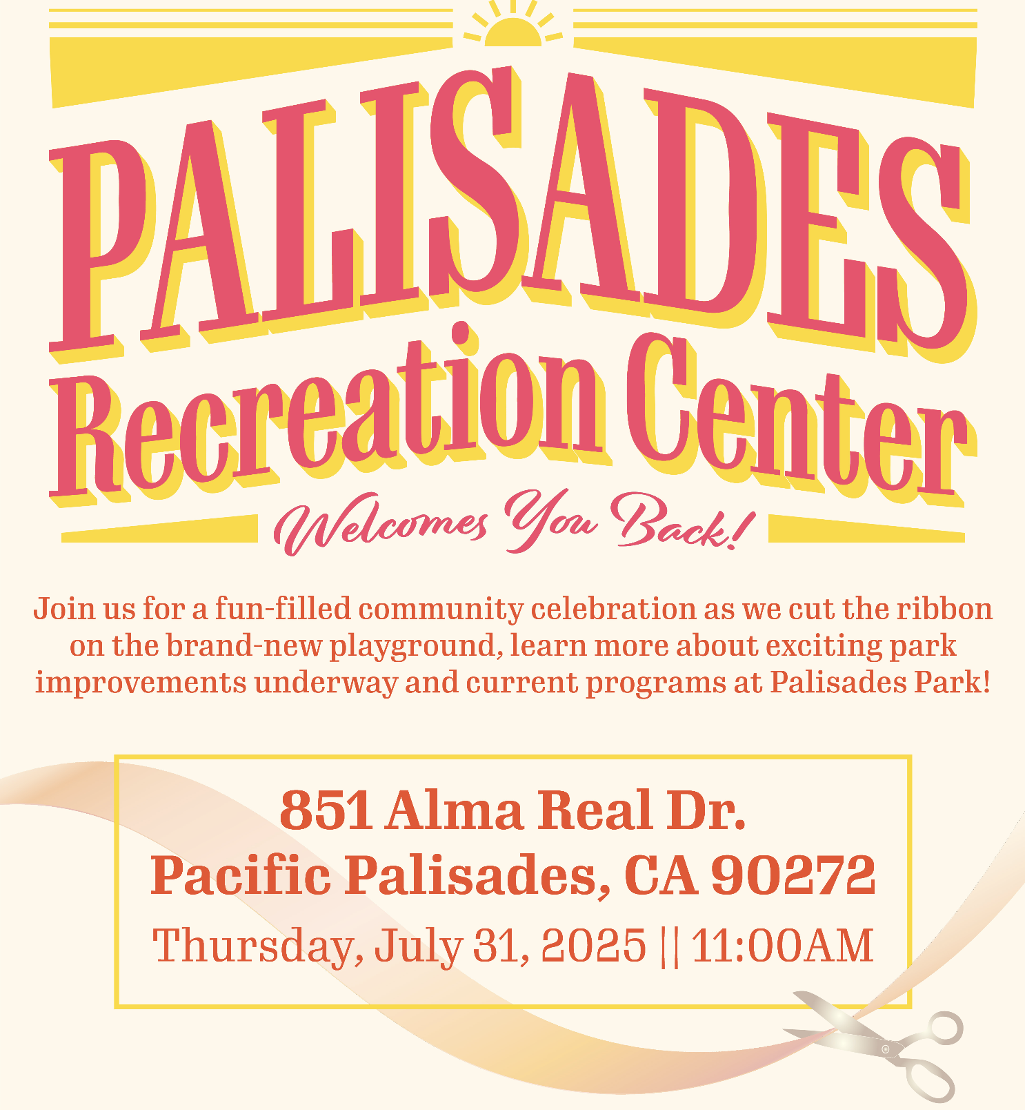 The Palisades Recreation Center will show off its new playground at an official ribbon cutting on Thursday, July 31, at 11 a.m.