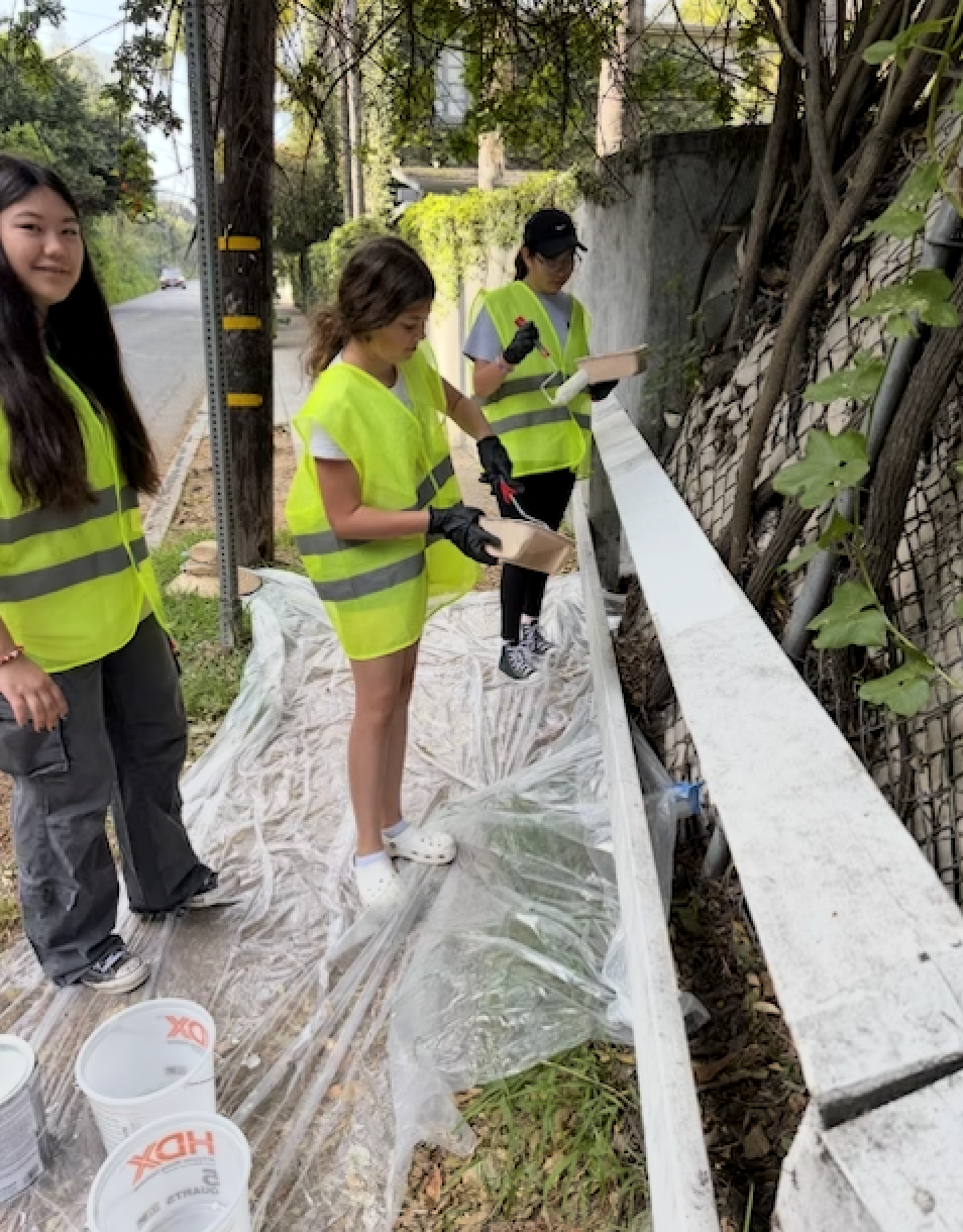 Girls paint fencing along the Ocean Avenue Extension.
