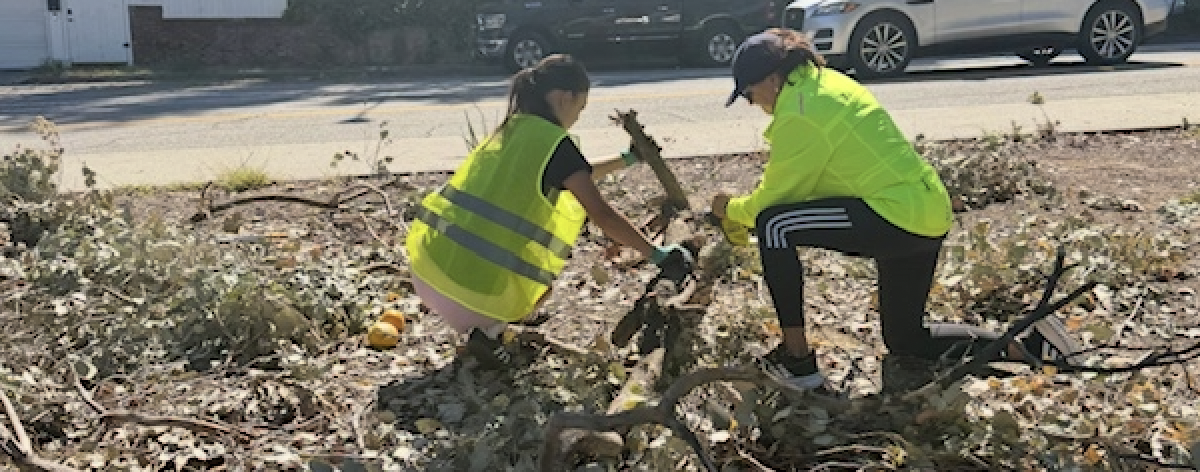 Led by Eagle Scout candidate Lauren Whiteley, thirteen girls worked together on three different problem areas in the neighborhood. The scouts cleaned up the triangle with the small library at the intersection of Entrada and Ocean Avenue Extension, removing a large fallen branch that had been on the ground for over a month, while also whacking down weeds and cleaning the sides of the roadway. They painted a section of the white fencing along Ocean Avenue Extension, and they raked and cut overgrown foliage along the channel.