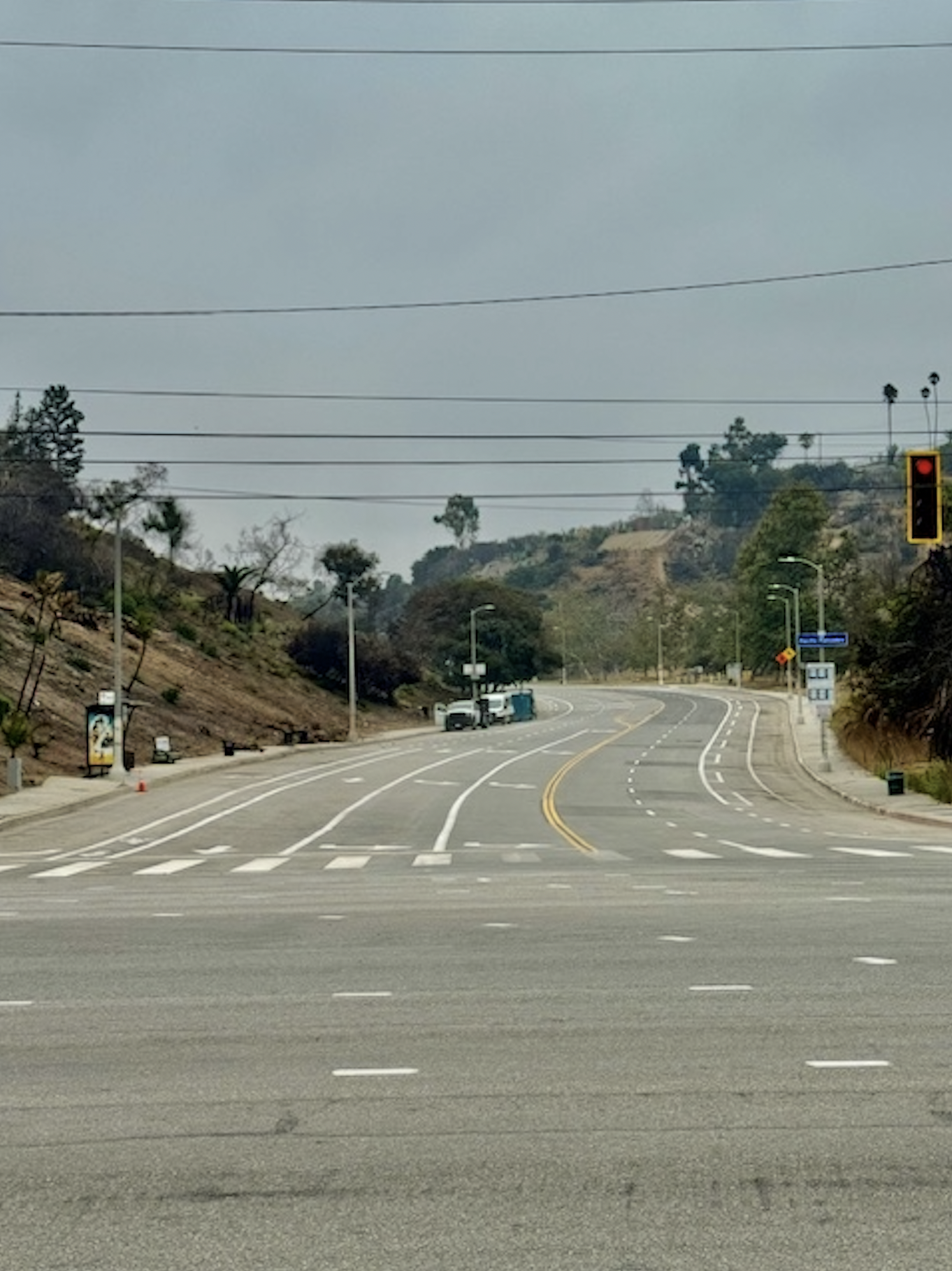 Temescal Canyon Rd. had been closed since the Palisades Fire. The U.S. Army Corps of Engineers used the space for gathering recylcable metals and concrete as part of its debris removal process. The corps repaired the roadway and repainted the lines before returning the road to the city.